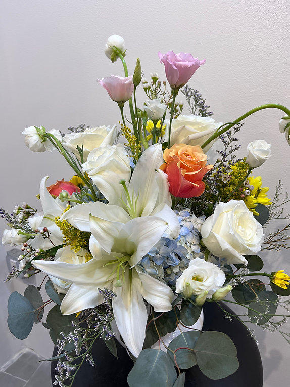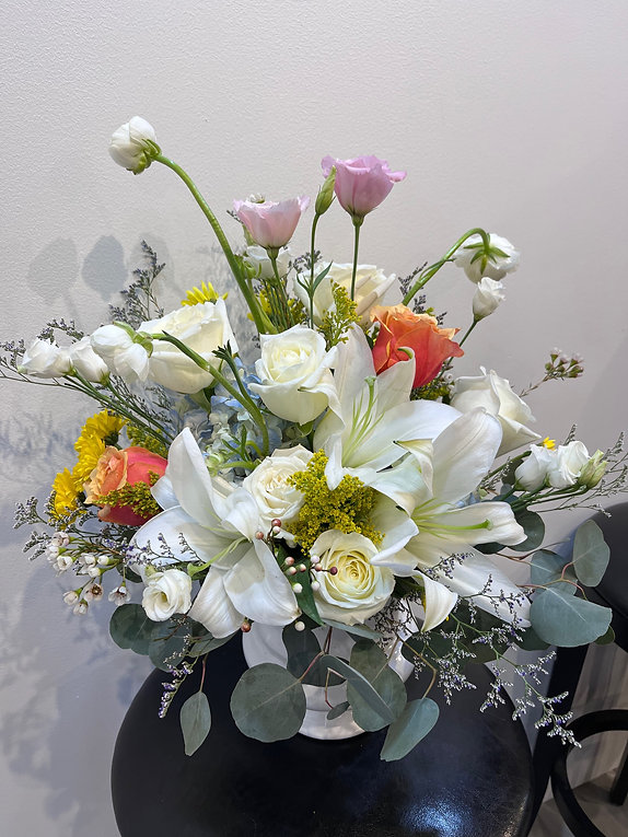 Due to seasonal availability, some flowers may be substituted with similar blooms of equal or greater value while maintaining the overall style and color palette.