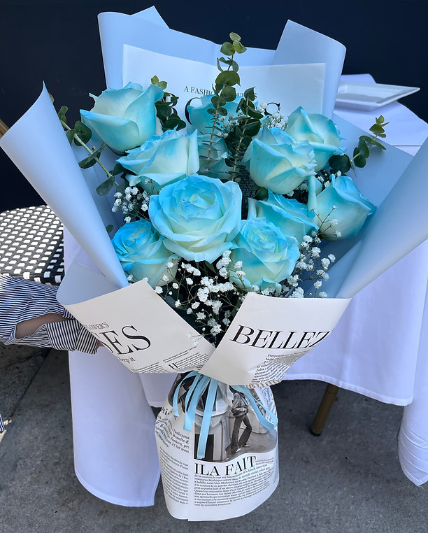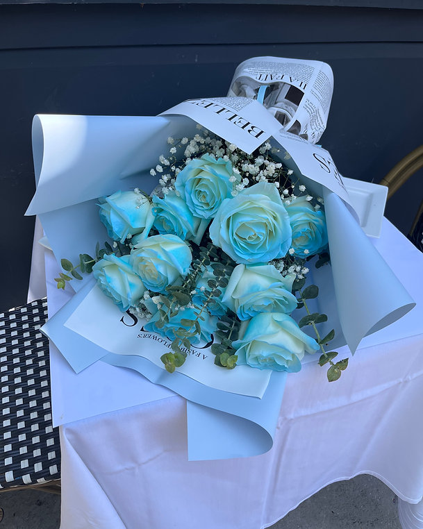 This elegant hand-tied bouquet features 11 Tiffany blue roses, accented with baby’s breath and eucalyptus for a soft and dreamy look. In the language of flowers, 11 roses symbolize “one heart, one love”, representing loyalty, devotion, and a promise to love only you.